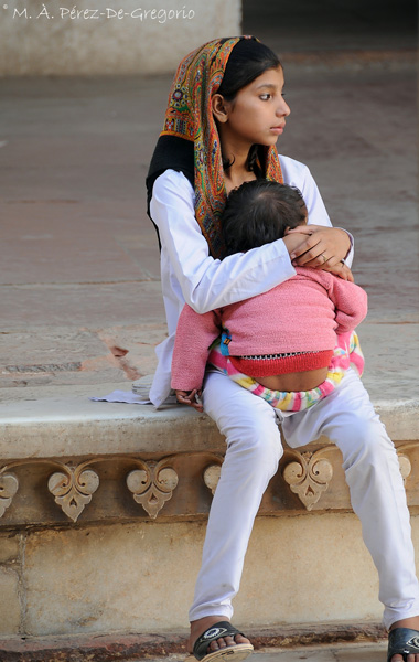 Nuestra ruta la concebimos en estas fechas al haber pasado ya la época de las lluvias (los monzones), con lo que las temperaturas al mediodía son suaves (23-28º C), aunque por la noche y por la mañana hace realmente frío, por lo que conviene olvidar los tópicos de que en los países exóticos siempre hace calor. Otro tópico es el de la comida. Realmente la comida india es muy picante o especiada, como ellos dicen, pero lo que no se suele decir, es que es una comida muy sabrosa. La India es un paraíso para los vegetarianos. En todo el viaje a penas si comimos un poco de pollo y cordero. El pescado, ni lo vimos. Las verduras son de gran calidad, así como la fruta. Comimos muy bien, tanto en los hoteles como en otros lugares más sencillos. Eso sí, la comida especiada, antes o después, hace mella en nuestros estómagos europeos, pero como siempre hay arroz basmati, buenísimo, un poco de dieta y ya está. El tipo de viaje, era Anna y yo sólos, con un vehículo privado y un chófer, contratados por la agencia, y encontrando en cada zona monumental a guías de habla castellana, igualmente contratados por la agencia. En general, el servicio fue bueno, aunque hubo guías buenos y otros no tanto, pero todos ellos hablaban bastante bien castellano. Igualmente los conductores (dos principalmente) fueron muy correctos, y acabamos el viaje sin incidencias de tráfico, algo que, viendo las carreteras indias y su volumen de tráfico de todo tipo, parace un milagro... Igualmente el vuelo interior Nagpur-Delhi fue muy bien, y a pesar de un pequeño problema con la reserva, la gentileza del personal del aeropuerto y el contacto telefónico con la agencia, lo arregló todo muy satisfactoriamente. La amabilidad de la gente de la India, es otra realidad comprobada. A pesar de nuestro nivel básico de inglés, el personal de los hoteles, restaurantes, etc., hicieron lo posible para que estuviéramos cómodos. Una de las cosas que vimos en la India, es que, así como en otros países sólo ves turismo extrangero, en la India encontramos mucho turismo interior.