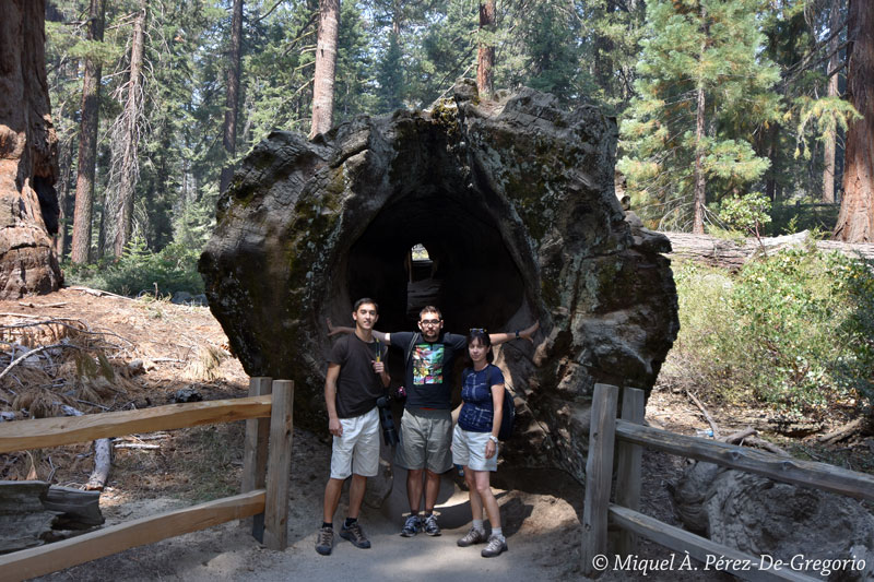 Oriol, Miquel jr. y Anna, al pie de una sequoya caída y hueca, en el Grant Grove.