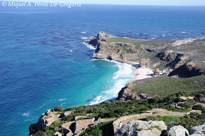 En el promontorio del Cape Point, con el oceano Atlántico al fondo