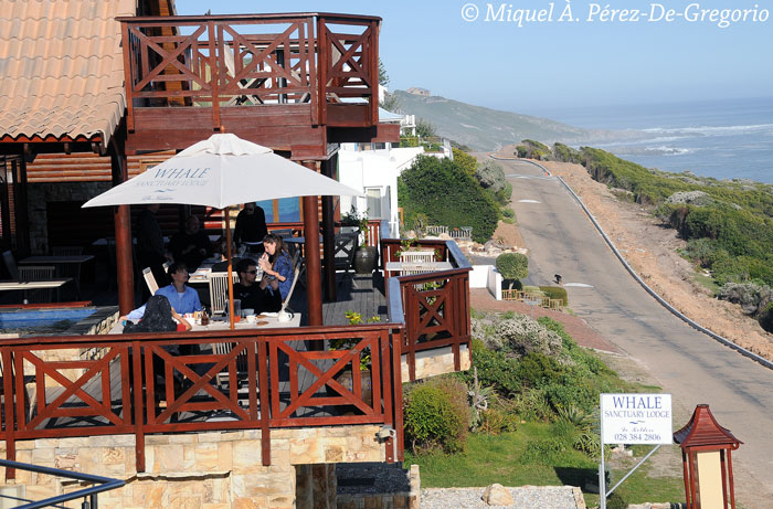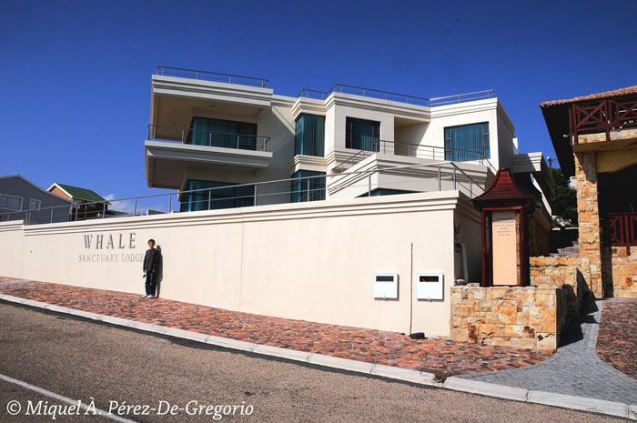 Tras la comida, seguimos camino hacia Gansbaai, donde nos alojaríamos en el barrio de De Kelders. Llegamos poco antes de la puesta de Sol y fue algo maravilloso. Nuestro alojamiento fue en The Whale Sanctuary Lodge, regentado por Jako Visser, que nos trató como si fuéramos realmente sus familiares venidos de lejos. Describir con simples palabras este B & B es realmente difícil. Con deciros que desde la cama se veían las ballenas, está todo dicho ! Los viajes de Naturaleza siempre tienen algo de imprevisible. No se trata de visitar zoos, sino zonas naturales, con sus complicaciones climatológicas, etc. La época de las ballenas y de los tiburones blancos, es en el invierno sudafricano. Y en invierno, no es nada raro que haya mala mar, o que llueva. Walker Bay, es el lugar de avistamiento de ballenas por excelencia, y en su corazón está situado este alojamiento. Además, cuenta con un restaurante excelente y a unos precios muy asequibles a nuestro bolsillo europeo. En estas aguas nacen los ballenatos y se aparean los adultos, las madres crían a sus pequeños hasta que tienen la fuerza suficiente para iniciar su anual viaje a la Antártica.