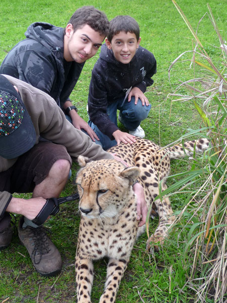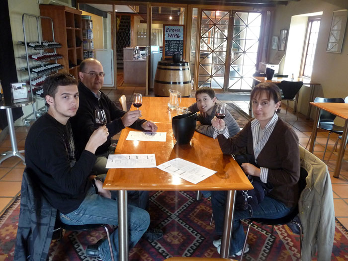 El día 15 de agosto, salimos de Simon's Town en dirección a Gansbaai, pero visitando en ruta muchas cosas. Paramos en Cheetah Outreach, en Spier Wine Estate, a 5 minutos de Stellenbosch. Allí, Oriol y Miquel, pudieron acariciar un guepardo macho, y también acariciar y sostener un águila. Inolvidable para ellos. Después, visitamos Stellenbosch, la segunda ciudad más antigua de Sudáfrica, después de Cape Town, y cuenta con unos 100 mil habitantes, tanto en su núcleo principal, como en las fincas de los alrededores, dedicadas en su mayorçía a la vinivultura. No en vano es la zona vinícola más importante del país. Pasear por sus elegantes calles es una delicia. Más tarde, fuimos a catar los excelentes vinos sudafricanos a las bodegas Lanzerac, donde catamos 5 de sus vinos, dos blancos y tres tintos. Excelentes ! Ya puestos, comimos en el fabuloso restaurante de su Hotel & Spa.