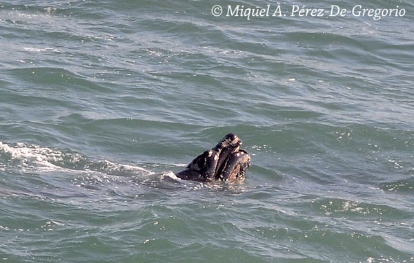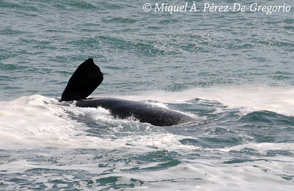 Y siempre, en cualquier momento, la sorpresa. El golpeo de la cola de la ballena franca del sur (Eubalena australis), que se oye a quilómetros de distancia, es uno de los gestos más típicos de la especie. Se cree que lo utilizan para comunicarse con sus congéneres.