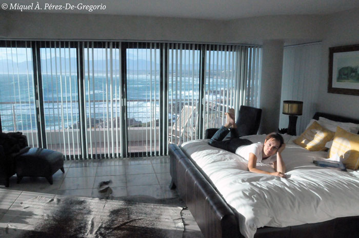 Más arriba, os hablaba de nuestra habitación en el Whale Sanctuary Lodge. Una de las más bellas que hayamos tenido nunca. En pocos sitios en el Mundo pueden verse las ballenas desde la cama, al amanecer. Si vais a esa zona, os lo recomiendo de veras