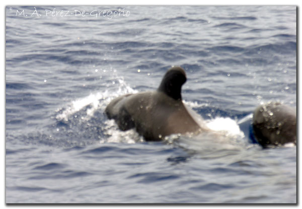 Miércoles 20 de agosto de 2008 El miércoles fuimos a una excursión a la que le tenía muchas ganas. La zona sur de Tenerife, entre la costa y la isla de la Gomera, es conocida internacionalmente por la presencia de cetáceos en sus azules aguas. Ya hacía meses que había contactado con la gente del Nashira II, que realiza tours de observación de cetáceos desde el puerto de los Gigantes. Hay que decir que, haya o no suerte, tan sólo navegar por esas costas, tan espectaculares, ya vale la pena. Además, la excursión, de tres horas, incluía la observación de cetáceos, un baño en la cala de Masca, y la comida, con lo que el plan del día era fabuloso. Por la mañana, desde Puerto de la Cruz, nos colamos de carretera, pero eso nos permitió ver de camino la zona de laurisilva del Tanque. Una vez en el puerto, embarcamos rumbo a la aventura. No hubo suerte del todo, ya que el mar estaba algo revuelto, y no vimos ni ballenas ni calderones. La tarde antes habían visto dos rocuales comunes, y hacia un par de días una ballena azul. Nosotros vimos muchos delfines, de dos especies: mular y moteado.