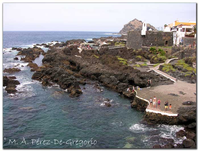 Domingo 24 de agosto de 2008 Hoy tocaba otro lugar increible: la Punta del Teno, en el extremo nordeste de Tenerife, en el municipio de Buenavista del Norte. Se trata de un lugar increíble, con un mar azul impresionante, y donde puedes bañarte entre lava, contemplando los acantilados de Los Gigantes. Realmente espectacular. Allí estuvimos un buen rato, admitrando el paisaje y haciendo algunas fotos submarinas. Tras la visita, visitamos el municipio de Garachico, donde comimos de maravilla en la Casa del Pescador, y de ahí, de vuelta para Puerto de la Cruz