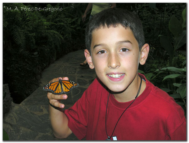 Oriol disfrutó de lo lindo, Aquí le vemos haciendose amigo de una monarca (Danaus plexippus)
