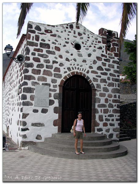 Anna frente a la iglesia de Masca