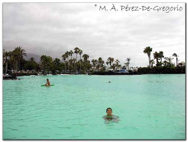 Oriol remojándose en los lagos Martiánez