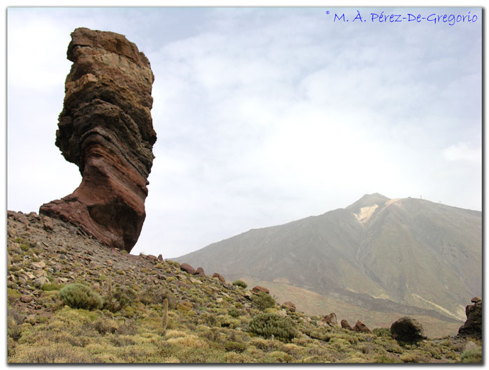 Un aspecto del roque Cinchado, con el Teide al fondo.