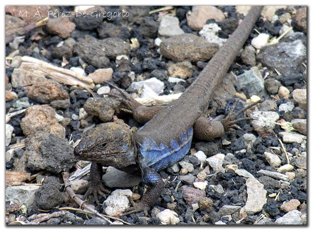 El el área de los Roques, no es difícil toparse con el lagarto tizón (Gallotia galloti), especies endémica de las islas de Tenerife y La Palma