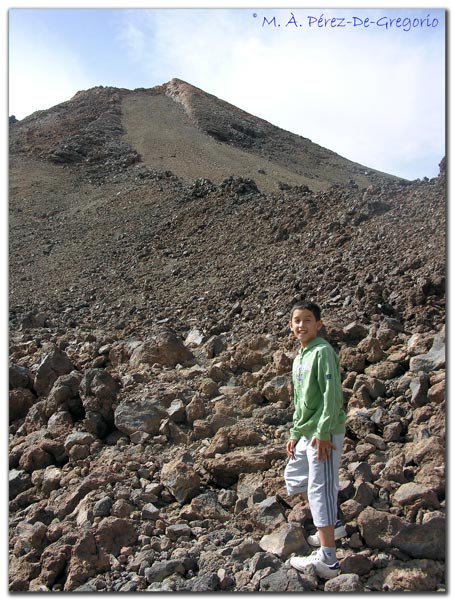 Jueves 21 de agosto de 2008 El Jueves optamos por realizar la excursión más importante: el Teide. Subimos por la Esperanza, para bajar por la tarde por la Orotava. La excursión del Teide, además de totalmente imprescindible, es para hacerla con mucha calma. Y ya no sólo porque pasamos del nivel del mar a 2.600 metros, sino porque cada uno de sus rincones, miradores, senderos, vale de por sí la visita. Tras dejar los núcleos urbanos y las carreteras transitadas, nos sumergimos en frondosos bosques de pino canario (Pinus canariensis), para pasar más adelante aun paisaje sobrecogedor, con una diversidad de colores que haría las delicias de cualquier pintor. Los ocres, grises, granates, etc., se mezclan con el azul del cielo y los verdes y amarillos de sus retamas. A pesar de la gran afluencia de turismo, es posible hallar zonas en las que uno se siente en otro planeta. La zona más frecuentada, los Roques, es muy bella, y a poco que te alejas por los senderos autorizados, te encuentras sólo. Lo que sí fue imposible por la mañana, fue coger el telesférico, para subir a los casi 3.600 m, ya muy cerca de la cumbre. Por suerte, aún pasado el horario, pudimos coger el último de ese día, y estar allá arriba prácticamente sólos... Un recuerdo imborrable.
