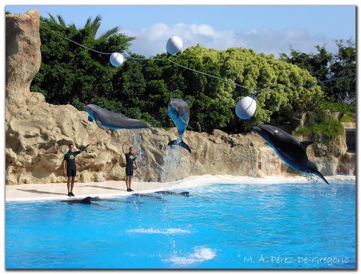 Un momento impactante del show en el delfinario
