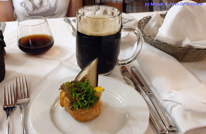 Para acompañar el gulash, nada mejor que una jarra de medio litro de cerveza negra de barril artesana, de sabor aromático y agradable, con una graduación de 4,5 º. En la República Checa hay reputadas marcas de cerveza, tanto rubia como negra, pero recomiendo probar la de barril, artesanal o casera, que suelen tener casi todos los locales que se precien.