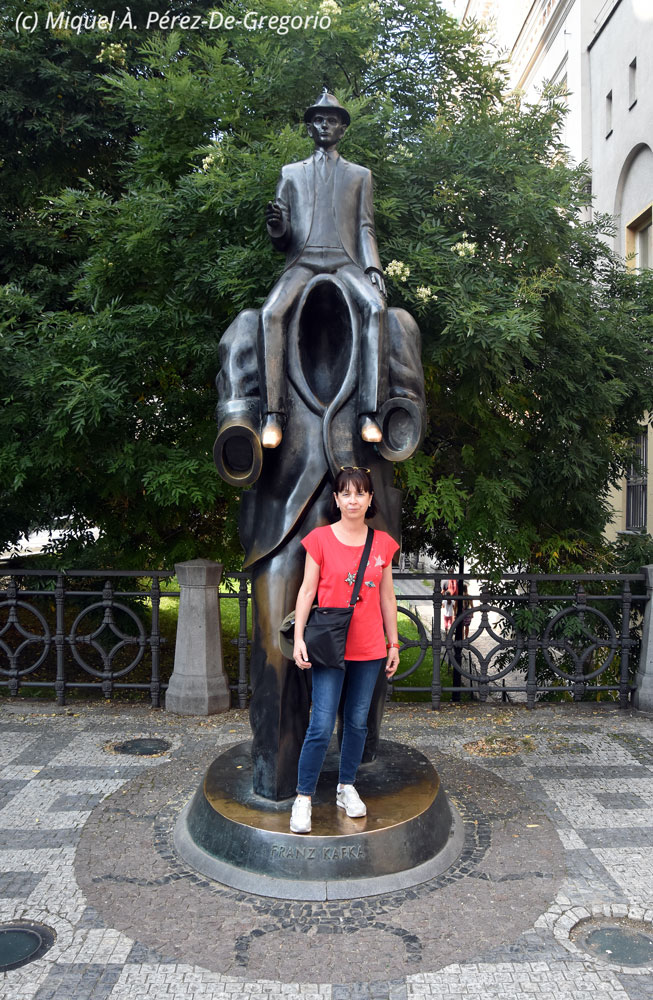 Anna junto a la famosa estatua de Kafka