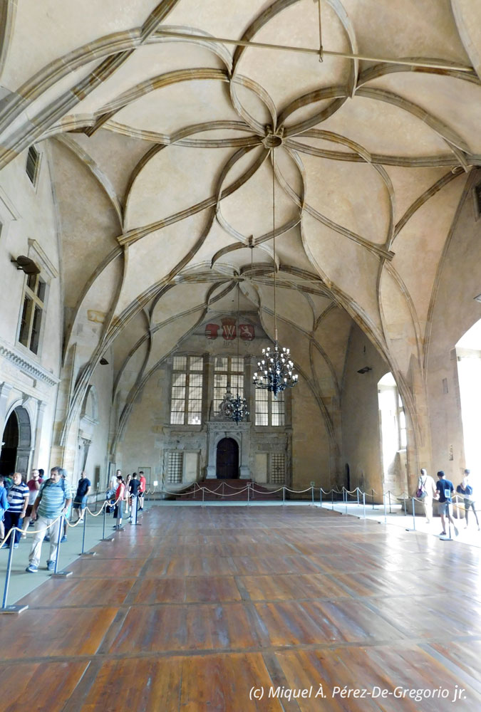 Tras la visita de San Vito, seguimos la ruta hacia el antigo Palacio Real, sede de los reyes checos hasta el siglo XVI. Este palacio fue construido sobre los restos del palacio románico de Soběslav. Lo más interesante es la Sala Gótica de Vladislav, el espacio arquitectónico laico más grande de toda la Praga medieval (construida en 1487–1500 por Benedikt Rejt) con su curiosa bóveda estrellada. En este lugar, desde una de sus ventanasm tuvo lugar la conocida como "defenestración de Praga", que sucedió el 23 de mayo de 1618, y que fue el desencadenante de la guerra de los Treinta Años. Después, nos dirigimos a visitar la basílica de San Jorge, el monumento más antiguo de Praga, ya que fue fundado en el s. X. Su estilo románico antiguo, se mezcla con capillas góticas y con una fachada barroca. Es un conjunto de gran belleza. El tiempo iba pasando, y toca ahora visitar el famoso "callejón del oro", uno de los lugares más concurridos del complejo del Castillo de Praga. Se trata de un estrecho callejón en el que hay unos 11 coloridos edificios, relativamente bajos, que se construyeron en un inicio para albergar a los guardias del emperador Rodolfo II de Habsburgo y a sus familias. El nombre de "callejón del oro" le viene de los orfebres que se instalaron más adelante. También se conoce como "calle de los alquimistas", en relación a la leyenda de que unos alquimistas se instalaron allí para intentar transformar el hierro en oro y producir la piedra filosofal y el elixir de la vida eterna. En ese mini barrio, vivieron temporalmente escritores famosos, como Kafka y Jaroslav.
