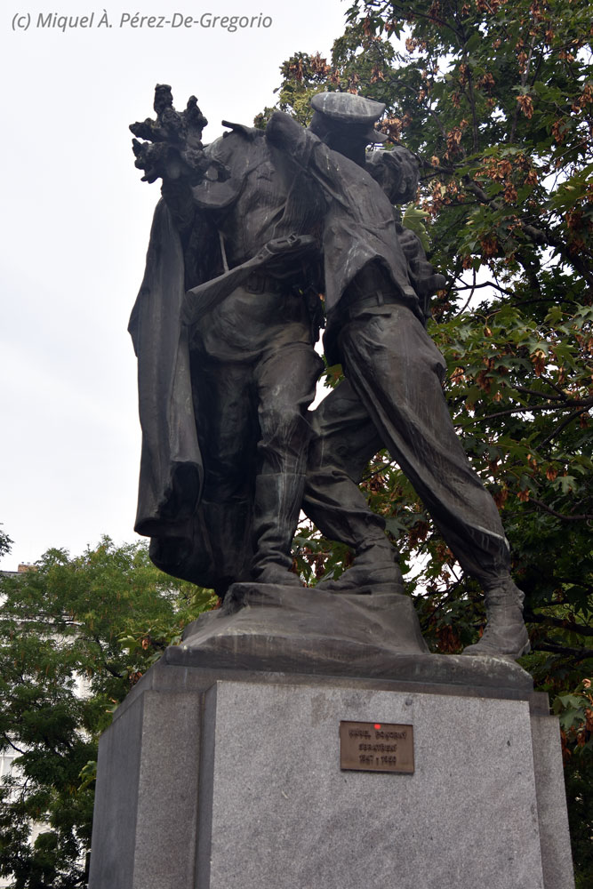 Tras la comida, teníamos que dirigirnos a la Plaza de la República, ya que a eso de las 15 h. nos recogen para ir a dar un paseo en barca por el río Moldava, gentileza de la agencia Viajeauto. Como todavía tenemos tiempo, damos un paseo para bajar la comida, parando un instante junto a la Torre de Jindřich (o Torre de Enrique), torre gótica del s. XV, en donde en la actualidad hay una tienda, una sala de exposiciones y un restaurante. Seguimos hasta el parque de la Estación (Vrchlického sady), ya en la Ciudad Nueva, y descansamos un momento en un banco, cerca de la estatua Sbratření, de Karel Pokorný, en la plaza Česká Třebová. Se trata de una curiosa estatua dedicada a la fraternidad, en la que se muestra a dos soldados besándose. Seguimos ruta, ya que en la zona se concentran varios vagabundos, y pasando por la oficina de Correos, llegamos de nuevo a la Torre de la Pólvora, y de ahí, a la Plaza de la República. Antes de que nos recojan, aún tenemos tiempo de entrar en la Casa de la Ciudad, el referente artístico más importante de la capital de Bohemia. Este hoy en día auditorio, se considera la obra más importante del modernismo checo. En este edificio, el 28 de octubre de 1918, fue proclamada la 1a. República Checa. Nosotros entramos en su cafetería, delicadamente decorada. Una maravilla. Sin más dilaciones, nos subimos al autocar de la compañía Sightseeing Tours, que nos llevaría hasta un embarcadero en la ribera derecha del río Moldava, para un paseo que, la verdad, fue muy relajante. Además, íbamos en un barco mediano y con no demasiada gente. Desde el Moldava, pudimos ver otra vista de la ciudad, además de observar algunas aves que viven en el río.La Torre de Jindřich