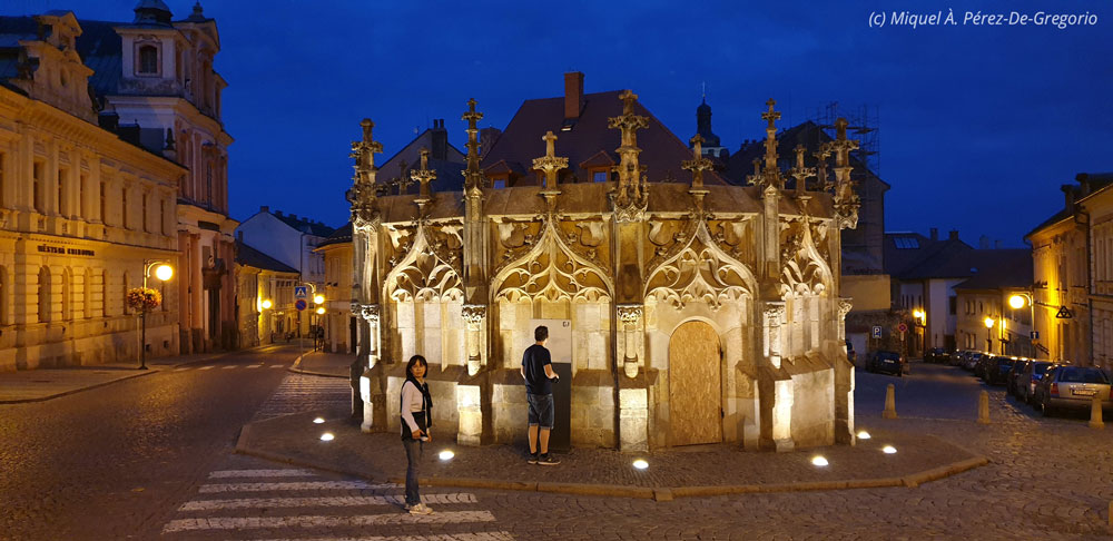 Preciosa fuente gótica en el centro histórico de Kutná Hora
