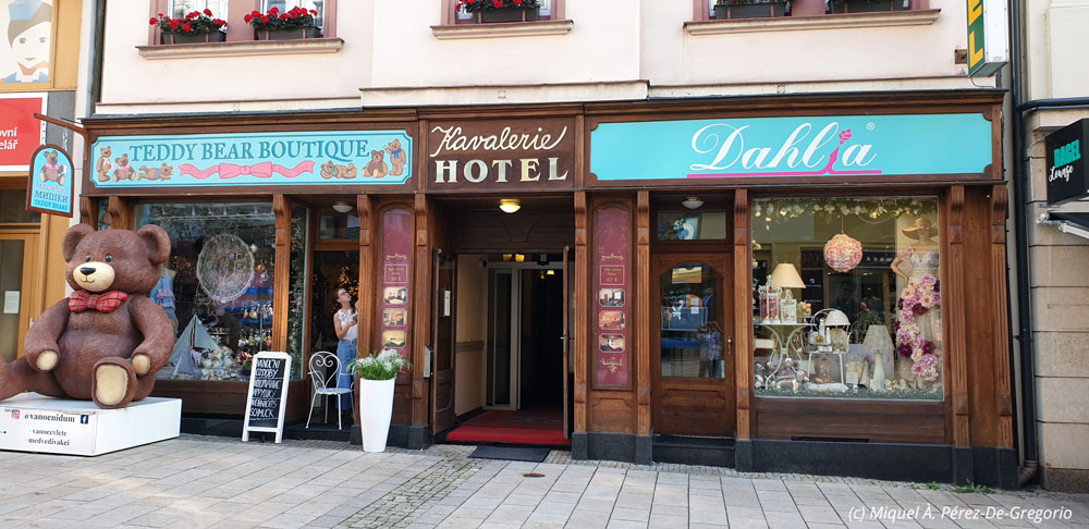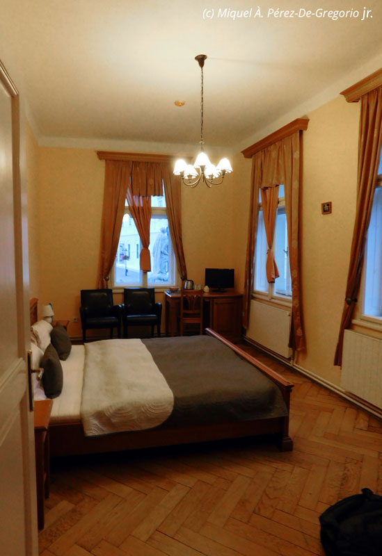 Fachada de nuestro hotel en Kutná Hora y aspecto de la habitación de Miquel Àngel jr.