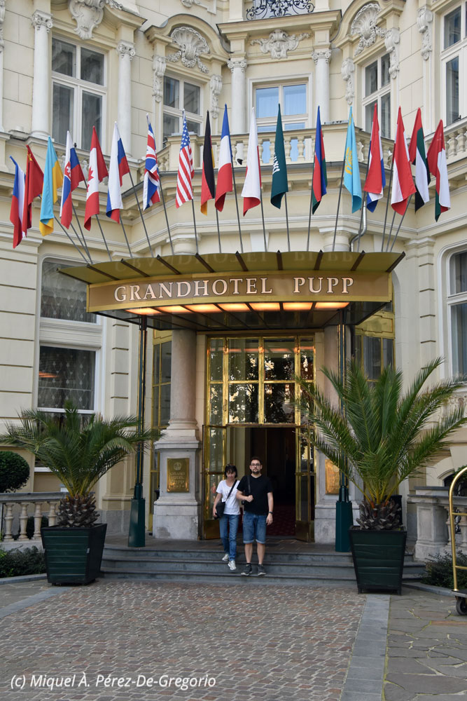 Anna y Miquel jr., en la puerta del Gran Hotel Pupp