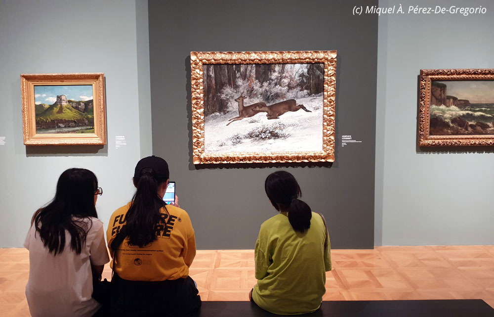 Unas turistas japonesas contemplan este fantástico lienzo de Gustave Courbet