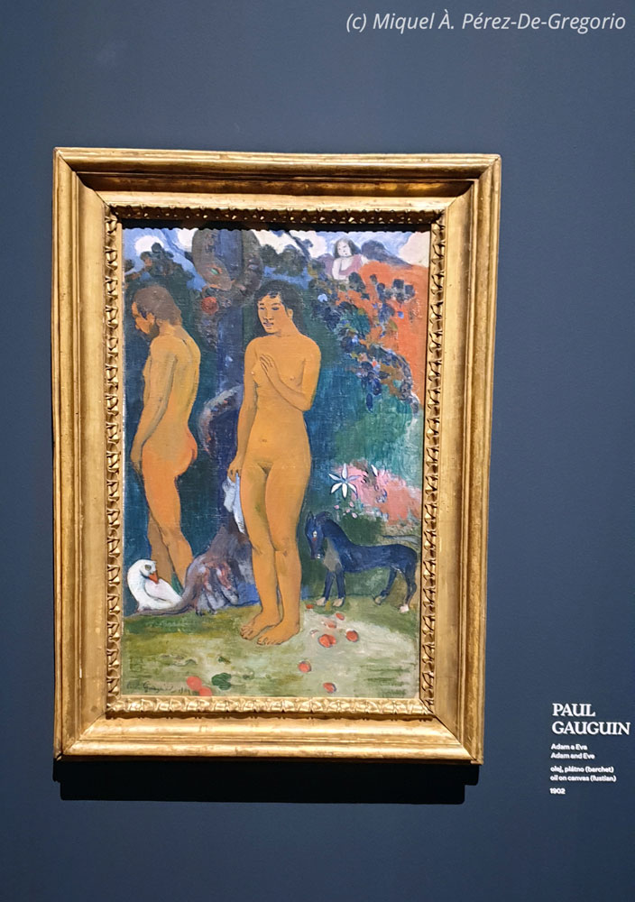 Colorido liezo de Paul Gauguin, representando a Adán y Eva, preludio de lo que sería su obra polinésica