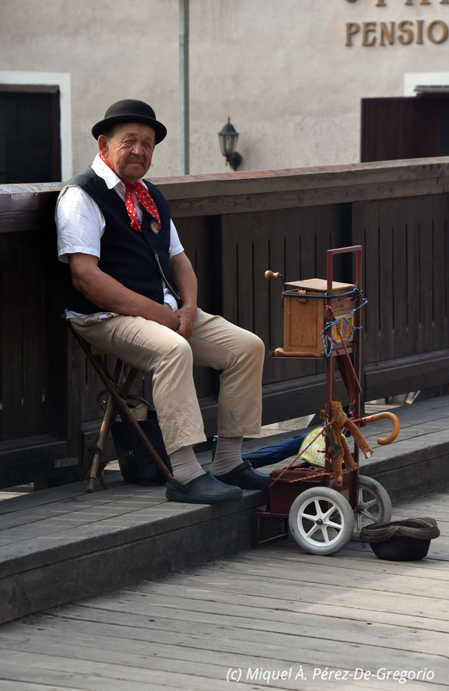 Retrato de músico callejero, en el puente sobre el río Moldava