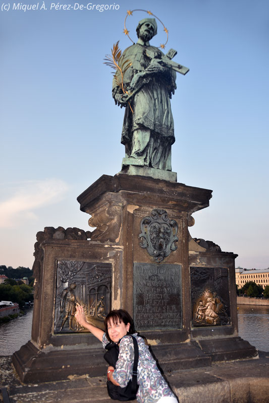 Anna cumpliendo la tradición: tocando el perro de la base de la estatua de San Juan Nepomuceno. Eso significa que volverá a Praga, aunque espero que no sea como la vez anterior, y tenga que esperar casi 30 años !
