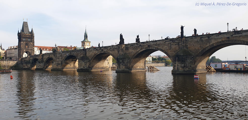 Imagen panorámica del Puente de Carlos visto desde el río Moldava