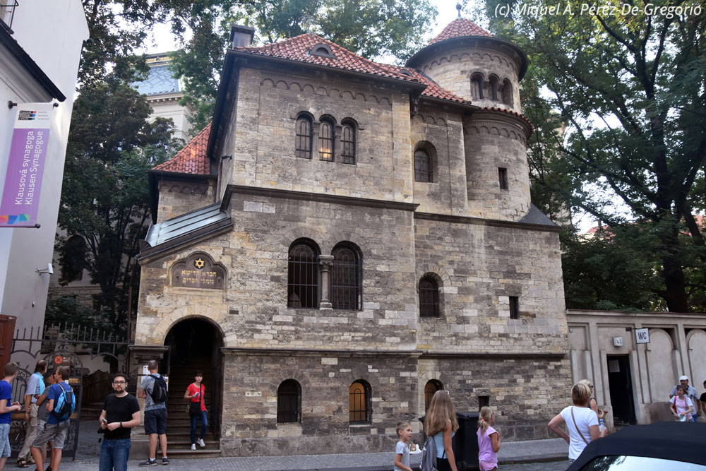 Tras la visita del Museo del Ghetto, tocaba devolver el coche en el centro de Praga, con el depósito lleno. La idea era ir primero al hotel, descargar maletas, etc., y después devolver el coche. Como el lugar indicado era en el barrio de Josevoj, la idea era aprovechar y visitar el barrio judío, antes de que cerraran a las 18 h. (otra vez los horarios checos !).De camino hacia Praga, ya descubrimos un cambio evidente. Si hasta ahora nuestra ruta había sido tranquila y plácida, a pocos km de Praga la caravana de coches y camiones era considerable. Por suerte, el googlemaps nos iba indicando las rutas con menos tráfico, y así, tras cruzar el río Moldava por el puente de Stefanik, llegamos al barrio de Nové Město (o ciudad nueva) del distrito de Praga 1. Praga es la ciudad más poblada de la República Checa, con 1,2 millones de habitantes, aunque si se suma el área metropolitana, ronda los 2 millones. La mayoría de turistas se limitan a visitar el casco histórico, situado en los barrios de Staré Město (o ciudad vieja), incluyendo el barrio judío (Josevoj), y el barrio de Mala Strana, donde se ubica el famoso "castillo" de Praga. Hay que decir que también se suele visitar parte del barrio de Nové Město (o ciudad nueva), con interesantes museos y/o obras de arte, edificios singulares, etc.Precisamente, nosotros decidimos pernoctar las tres noches que íbamos a pasar en Praga en el hotel Clement, situado en el Nové Město, pero muy cerca del centro histórico, así como del río Moldava. El hotel Clement es un establecimiento moderno, cómodo y limpio, con un desayuno buffet fantástico, y un personal muy atento. Estuvimos muy bien, evitando además el bullicio de los turistas de noche, en el centro histórico, y teniendo además una serie de restaurantes cercanos, que al estar algo apartados de ese centro, estaban muy tranquilos. Para hacerse una idea, del hotel Clement al famoso reloj astronómico, solo son 1,2 km de agradable paseo.Tras instalarnos y sin perder tiempo, cogemos el coche y lo devolvemos en la sede de Europcar situada en el barrio de Josevoj. El Skoda scala se ha portado de maravilla y nos "despedimos" de él. A pocos metros, tenemos la Sinagoga Española, pero nos enteramos de que está cerrada por reformas.... No pasa nada. Visitamos la famosa escultura de Kafka, y nos disponemos a visitar el barrio judío: la Sinagona Vieja/Nueva, el Museo Judío y el conocido cementerio.