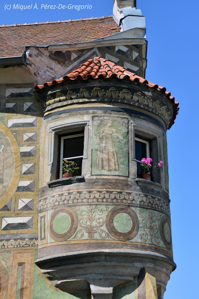 Detalle de una ventana de una de las casas esgrafiadas