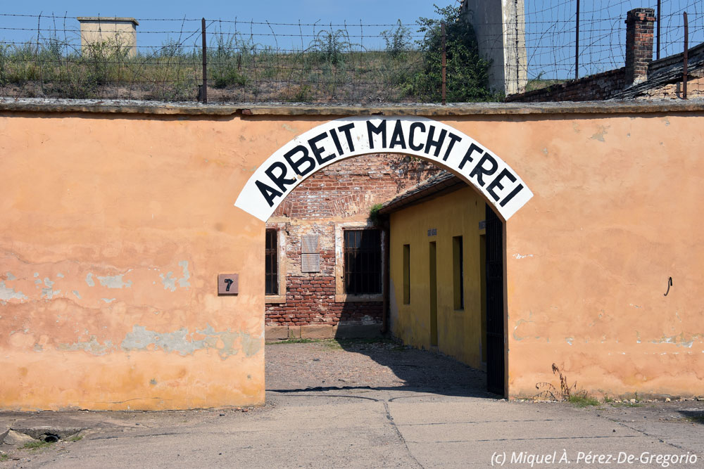 Arbeit macht frei = el trabajo os hará libres, macabra frase que coronaba la entrada a las habitaciones donde se hacinaban cientos de personas, y que fue usada en la mayoría de campos de concentración nazis.