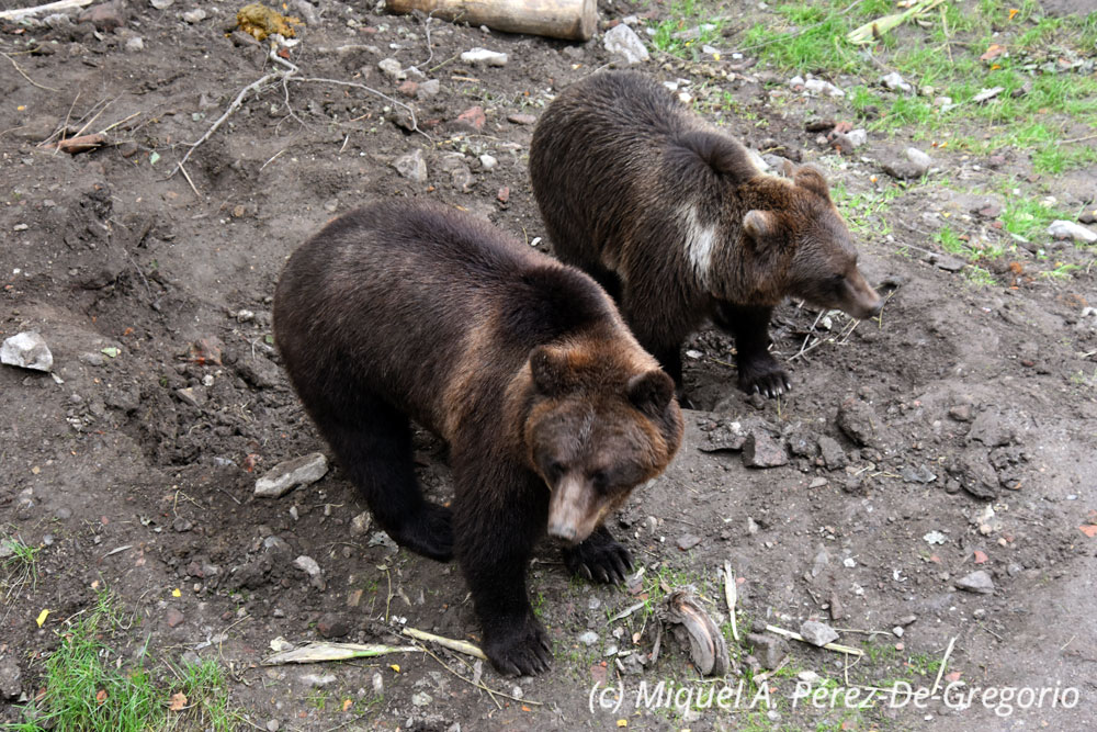Dos de los osos pardos (Ursus arctos) que viven en el foso del castillo